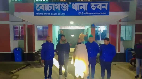 দিনাজপুর প্রতিনিধিঃ দিনাজপুর বোচাগঞ্জে চাঁদাবাজির অভিযোগে উপজেলা এনসিপির আহ্বায়কসহ ২ জনকে গ্রেফতার করেছে পুলিশ। রোববার (৪ জানুয়ারি) সকাল ১১ টায় দিনাজপুরের অতিরিক্ত পুলিশ সুপার (অপরাধ) আনোয়ার হোসেন গ্রেফতার ও
