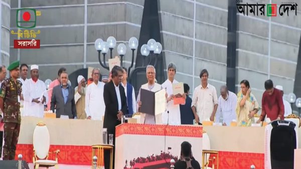 জাতীয় নাগরিক পার্টি (এনসিপি) ছাড়া জুলাই সনদে স্বাক্ষর করেছে সকল রাজনৈতিক দল। বিএনপি-জামায়াতসহ অন্যন্যা রাজনৈতিক দলের নেতাদের সাথে নিয়ে বিকেল ৫টা ৫ মিনিটে প্রধান উপদেষ্টা ড. মুহাম্মদ ইউনূস জুলাই সনদ