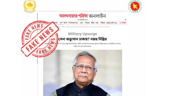 অন্তর্বর্তী সরকারের প্রধান উপদেষ্টার প্রেস উইং জানিয়েছে, বাংলাদেশের সেনাবাহিনীকে নিয়ে আনন্দবাজার পত্রিকায় প্রকাশিত সংবাদ মিথ্যা ও ভিত্তিহীন। প্রতিবেদনের বাস্তবতার সঙ্গে কোনো সম্পর্ক নেই; এটি শুধুই একটি বলিউডি রোমান্টিক কমেডি। শুক্রবার