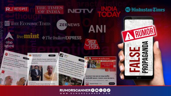 রিউমার স্ক্যানার টিমের অনুসন্ধানে দেখা গেছে আওয়ামী লীগ সরকারের পতনের পর ১২ আগস্ট থেকে ৫ ডিসেম্বর পর্যন্ত ভারতীয় গণমাধ্যমে প্রচারিত অন্তত ১৩টি ভুয়া খবর পাওয়া গেছে। এমন ভুয়া খবর প্রচারের