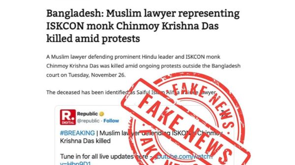 মঙ্গলবার চট্টগ্রামে নির্মমভাবে খুন হওয়া আইনজীবী সাইফুল ইসলাম আলিফকে চিন্ময় কৃষ্ণ দাসের আইনজীবী বলে দাবি করে কিছু ভারতীয় গণমাধ্যম অপপ্রচার চালাচ্ছে বলে জানিয়েছে প্রধান উপদেষ্টার প্রেস উইং। প্রধান উপদেষ্টার প্রেস