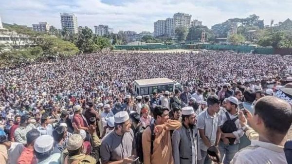 চট্টগ্রাম আদালত প্রাঙ্গণে চিন্ময় কৃষ্ণ দাস ব্রহ্মচারীর মুক্তির দাবি ঘিরে সংঘর্ষে নিহত আইনজীবী সাইফুল ইসলাম আলিফের দু’দফা জানাজা অনুষ্ঠিত হয়েছে নগরীতে। জানাজায় অংশ নিতে কোর্ট বিল্ডিং চত্বর ও জমিয়তুল ফালাহ