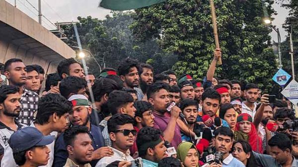 সংস্কৃতি মন্ত্রণালয়ের উপদেষ্টা হিসেবে অন্তর্বর্তী সরকারে অন্তর্ভুক্ত মোস্তফা সরয়ার ফারুকীসহ ‘ফ্যাসিবাদের দোসরদের’ অপসারণের দাবি জানিয়েছেন ঢাকা বিশ্ববিদ্যালয়ের শিক্ষার্থীরা।সোমবার (১১ নভেম্বর) বিকেল ৪টায় বিশ্ববিদ্যালয়ের রাজু ভাস্কর্যের সামনে আয়োজিত এক মানববন্ধনে এ