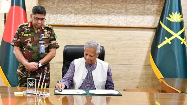 প্রধান উপদেষ্টা ড. মুহাম্মদ ইউনূস বলেছেন, ‘দেশের ক্রান্তিলগ্নে সেনাবাহিনী মানুষের পাশে এসে দাঁড়িয়েছে। একটি অন্তর্বর্তীকালীন সরকার গঠনের প্রক্রিয়াকে ত্বরান্বিত করে দেশকে অস্থিতিশীল পরিস্থিতির হাত থেকে রক্ষা করেছে। ফলশ্রুতিতে সেনাবাহিনী আবারও