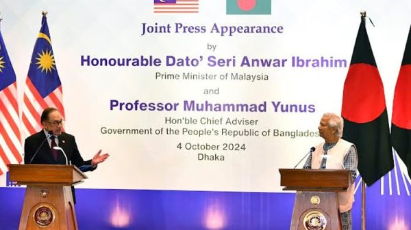 প্রধান উপদেষ্টা অধ্যাপক মুহাম্মদ ইউনূসকে তার ‘মহান বন্ধু’ হিসাবে উল্লেখ করে, মালয়েশিয়ার প্রধানমন্ত্রী দাতো’ সেরি আনোয়ার ইব্রাহিম অন্তর্বর্তী সরকারের সংস্কার প্রচেষ্টার প্রতি তার সমর্থন প্রকাশ করেছেন। আনোয়ার ইব্রাহিম ৪ অক্টোবর