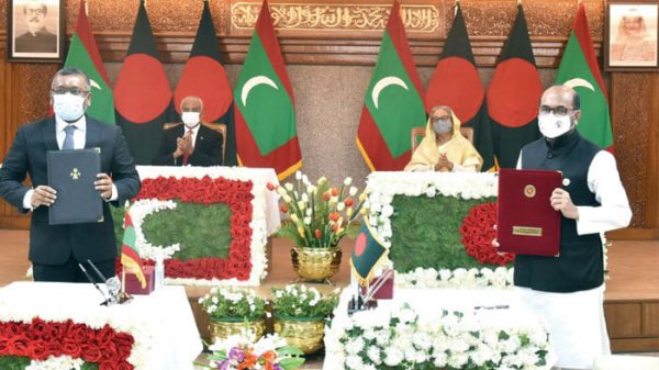 বাংলাদেশ ও মালদ্বীপের মালদ্বীপের প্রেসিডেন্ট ইব্রাহিম মোহাম্মদ সলিহর বৈঠকের পর দুই দেশের মধ্যে সমঝোতা স্মারকগুলো সই হয়। সমঝোতা স্মারকগুলোর মধ্যে রয়েছে যৌথ কমিশন গঠন (জেসিসি), পররাষ্ট্রসচিব পর্যায়ে নিয়মিত বৈঠক, সামুদ্রিক