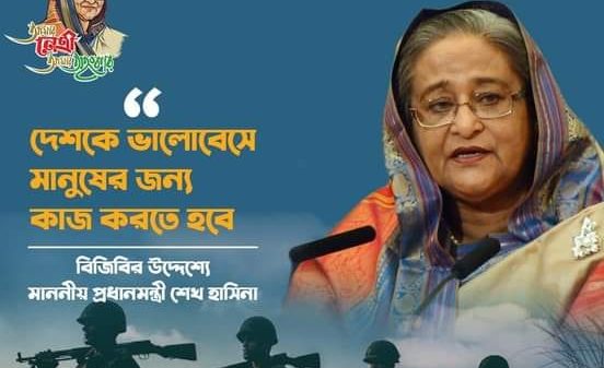 দেশের সীমান্ত রক্ষী বাহিনীর (বিজিবি) সদস্যদের দেশ ও জাতির প্রতি সেবার মনোভাব নিয়ে দায়িত্ব পালনের নির্দেশনা দিয়ে প্রধানমন্ত্রী শেখ হাসিনা বলেছেন, দেশ ও জাতির প্রতি সেবার মনোভাব নিয়ে নিজের দায়িত্ব-কর্তব্য