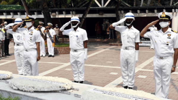 জাতির পিতা বঙ্গবন্ধু শেখ মুজিবুর রহমানের জন্মশতবার্ষিকী এবং স্বাধীনতার সুবর্ণজয়ন্তী উদযাপন উপলক্ষে বাংলাদেশ সফররত ভারতীয় নৌবাহিনীর প্রতিনিধিরা মঙ্গলবার টুঙ্গিপাড়ায় বঙ্গবন্ধুর সমাধিস্থলে পুষ্পস্তবক অর্পণ করে শ্রদ্ধা জানান। পরে তারা জাতির পিতার