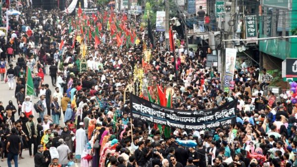 আজ ১০ মহররম পবিত্র আশুরা। মুসলমানদের জন্য অত্যন্ত তাৎপর্যপূর্ণ ও শোকাবহ এ দিনে শিয়া সম্প্রদায়ের শোকাবহ তাজিয়া মিছিল হয়েছে। আজ সকাল ১০টায় রাজধানীর ৪০০ বছরের প্রাচীণ হোসনি দালান থেকে এই