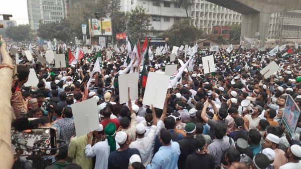 ফিলিস্তিনের অবরুদ্ধ গাজায় ইসরায়েলি আগ্রাসনের প্রতিবাদে ঘোষিত ‘দ্য ওয়ার্ল্ড স্টপস ফর গাজা’ কর্মসূচির অংশ হিসেবে বিক্ষোভ মিছিল হচ্ছে রাজধানীসহ সারাদেশে। সোমবার (৭ মার্চ) সকাল থেকে রাজধানীসহ দেশের বিভিন্ন স্থানে গাজার