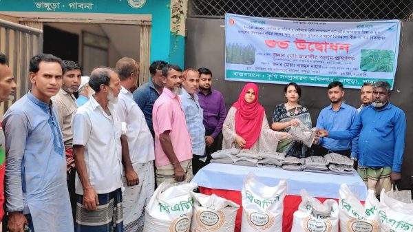 ভাঙ্গুড়া সংবাদদাতা : পাবনার ভাঙ্গুড়া উপজেলায় কৃষকদের মাঝে সার ও বীজ বিতরণ করেছেন উপজেলা নির্বাহী অফিসার মোছা.নাজমুন নাহার। চলতি অর্থবছরের খরিপ-১ মৌসুমে কৃষি প্রণোদনা কর্মসূচির আওতায় তিল ও মুগ ডালের