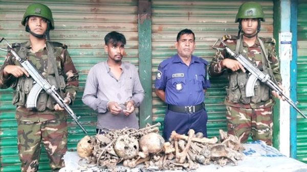 ময়মনসিংহের ভালুকায় মানুষের তিনটি কঙ্কালসহ মাসুদ রানা (২২) নামে এক যুবককে আটক করেছে যৌথ বাহিনী। শুক্রবার ভোরে ঢাকা-ময়মনসিংহ মহাসড়কের মেহেরাবাড়ী এলাকায় চেকপোস্টে তল্লাশির সময় তাকে আটক করা হয়। আটককৃত মাসুদ