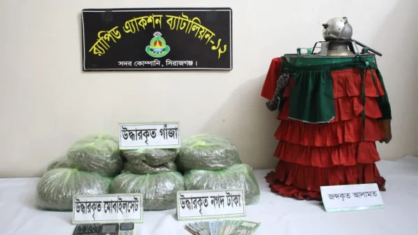 চানাচুর বিক্রেতা সেজে অভিনব কায়দায় মাদকদ্রব্য সরবরাহ কালে পাবনার ভাঙ্গুড়ায় ১০ কেজি গাঁজাসহ দু’মাদক কারবারিকে আটক করেছে র্যাব-১২। শুক্রবার গভীর রাতে পৌর শহরের দক্ষিণ মেন্দা কুঠিপাড়া এলাকার একটি বসত বাড়ি
