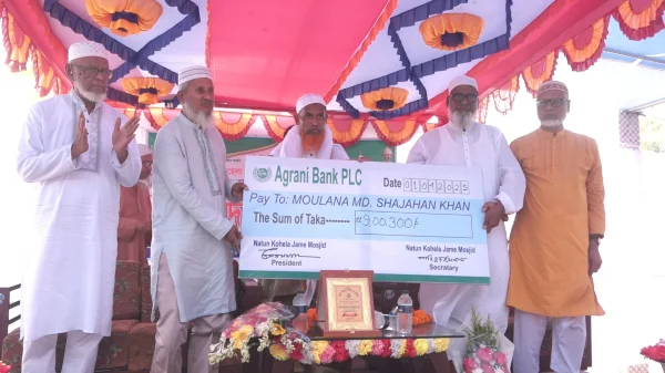 টাঙ্গাইলের মির্জাপুরে নতুন কহেলা জামে মসজিদের ইমাম ও খতীবকে তিন যুগ ইমামতি শেষে রাজকীয় সংবর্ধনা দেওয়া হয়েছে। এছাড়া ইমামকে এককালীন পেনসন হিসেবে দেওয়া হলো ৯ লাখ টাকা। মঙ্গলবার দুপুরে উপজেলার
