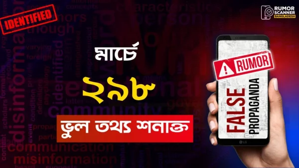 মার্চ মাসে ইন্টারনেটে ছড়িয়ে পড়া ২৯৮টি ভুল তথ্য শনাক্ত করেছে বাংলাদেশের ফ্যাক্টচেকিং প্রতিষ্ঠান রিউমার স্ক্যানার। ফ্যাক্টচেকিং প্রতিষ্ঠানটির ওয়েবসাইটে প্রকাশিত আজ এক প্রেস বিজ্ঞপ্তিতে এ তথ্য জানানো হয়। রিউমার স্ক্যানার জানায়,