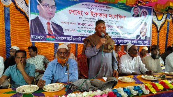 পাবনার ভাঙ্গুড়ায় সাবেক প্রধানমন্ত্রী ও বিএনপি চেয়ারপার্সন বেগম খালেদা জিয়ার রোগ মুক্তি কামনায় দোয়া ও ইফতার মাহফিল অনুষ্ঠিত হয়েছে। আজ মঙ্গলবার (২৫ মার্চ) পৌরসভার শরৎনগর ফাজিল মাদরাসা মাঠে এই ইফতার