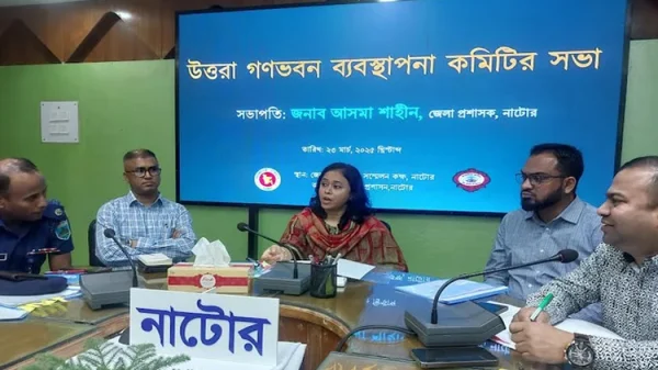 নাটোরে উত্তরা গণভবন ব্যবস্থাপনা কমিটির সভা অনুষ্ঠিত হয়েছে। আজ রোববার বেলা ১১টায় জেলা প্রশাসকের সম্মেলন কক্ষে অনুষ্ঠিত সভায় সভাপতিত্ব করেন জেলা প্রশাসক আসমা শাহীন। সভায় মন্ত্রিপরিষদ বিভাগের অনুমোদন সাপেক্ষে উত্তরা