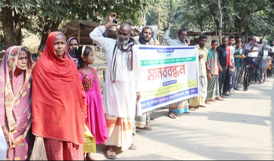 পাবনার সাঁথিয়ায় ভাইয়ের জমি আরেক ভাই কর্তৃক জোড়পূর্বক দখলের অভিযোগে মানববন্ধন করেছেন ভূক্তভোগি পরিবার।শুক্রবার(৬ডিসেম্বর)সাঁথিয়া পৌরসভার বোয়ইলমারী-আমোশ সড়কে মানববন্ধন করেন বোয়াইলমারী গ্রামের ভূক্তভোগী আমজাদ হোসেন ফকির ও সোনাই ফকিরের পরিবার। মানববন্ধনে