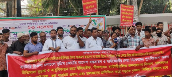 সাত দফা দাবিতে রাজধানীর জাতীয় প্রেস ক্লাবের সামনে সমাবেশ করেছে রিকশা, ব্যাটারিচালিত রিকশা-ভ্যান ও ইজিবাইক চালক সংগ্রাম পরিষদ। শনিবার (২৩ নভেম্বর) সকালে জাতীয় প্রেস ক্লাবের সামনে এ সমাবেশ করে সংগ্রাম