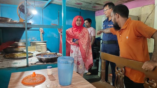 ভাঙ্গুড়া(পাবনা)সংবাদদাতা : পাবনার ভাঙ্গুড়ায় অস্বাস্থ্যকর পরিবেশে খাবার তৈরি ও সংরক্ষণের দায়ে ভ্রাম্যমান আদালত বৃহস্পতিবার দুই খাবার হোটেলের মালিককে ৭ হাজার টাকা অর্থদন্ড প্রদান করেছেন। হোটেলগুলো হলো,ভাঙ্গুড়া পৌরসভার আল্লাহ ভরসা ও