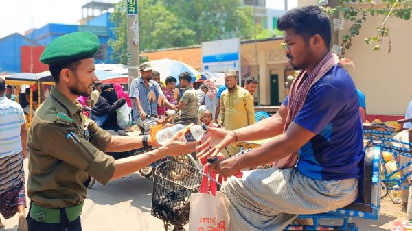 ভাঙ্গুড়া প্রতিনিধি : তীব্র গরমে স্বস্তি এনে দিতে পাবনার ভাঙ্গৃড়া উপজেলা আনসার কোম্পানী কমান্ডার শেখ সাখাওযাত হোসেনের নেতৃত্বে সাধারণ মানুষের মাঝে বোতলজাত পানি, খাবার স্যালাইন ও শরবত বিতরণ করা হয়।