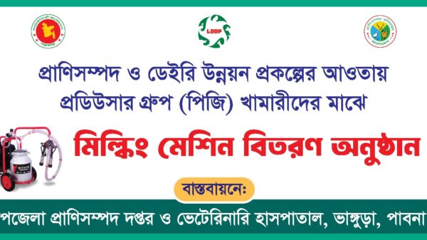 ভাঙ্গুড়া প্রতিনিধি : পাবনার ভাঙ্গুড়া উপজেলা প্রাণিসম্পদ অধিদপ্তর ও ভেটেরিনারি হাসপাতালের আয়োজনে গোদোহন সহজিকরণে সোমবার প্রডিউসার গ্রুপ(পিজি) খামারিদের মাঝে মিল্কিং মেশিন বিতরণ করা হয় । অনুষ্ঠানে উপজেলা পরিষদের চেয়ারম্যান মো.বাকি