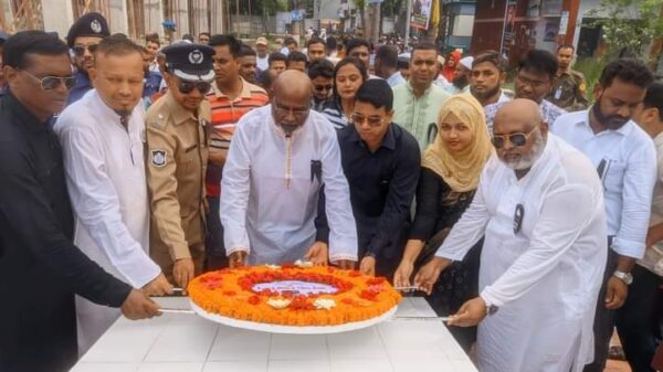 পাবনার ভাঙ্গুড়ায় যথাযোগ্য মর্যাদা ও দিনব্যাপী নানা কর্মসূচির মধ্য দিয়ে জাতির পিতা বঙ্গবন্ধু শেখ মুজিবুর রহমানের ৪৮তম শাহাদাত বার্ষিকী ও জাতীয় শোক দিবস পালিত হয়েছে। দিনের শুরুতেই সরকারি ও বে-সরকারি