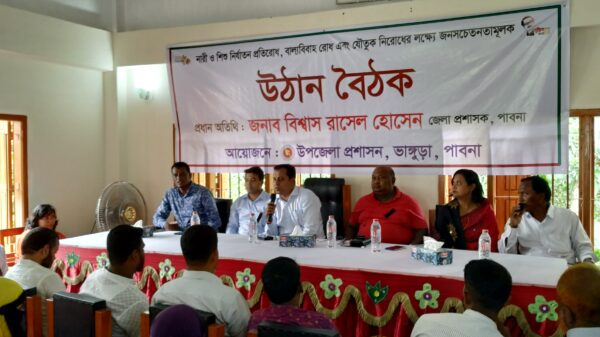 পাবনার ভাঙ্গুড়ায় নারী ও শিশু নির্যাতন প্রতিরোধ,বাল্যবিবাহ রোধ এবং যৌতুক নিরোধের লক্ষ্যে জনসচেতনতামূলক বিষয়ে উঠান বৈঠক অনুষ্ঠিত হয়েছে। সোমবার দুপুরে উপজেলা প্রশাসনের আয়োজনে উপজেলার মন্ডতোষ ইউনিয়ন পরিষদের সম্মেলন কক্ষে এ