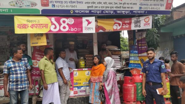 ভাঙ্গুড়া প্রতিনিধি: পাবনার ভাঙ্গুড়া পৌরসভার বড়ালব্রিজ বাজারে অবৈধ চাল মজুদের দায়ে ভ্রাম্যমান আদালত সোমবার দুপুরে এক খাদ্য ব্যবসায়ীকে ১০হাজার টাকা জরিমানা করেছেন। তার নাম হাজী খাইরুল ইসলাম। উপজেলা খাদ্য নিয়স্ত্রক