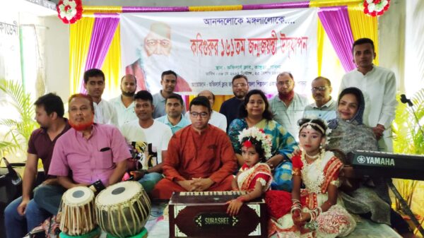 বিশ্বকবি রবীন্দ্রনাথ ঠাকুরের ১৬১তম জন্মজয়ন্তী উপলক্ষে পাবনার ভাঙ্গুড়া উপজেলা অফিসার্স ক্লাবে সোমবার রাতে বর্ণাঢ্য সঙ্গীতানুষ্ঠানের আয়োজন করা হয়। উপজেলা নির্বাহী অফিসার মো: নাহিদ হাসান খান এতে সভাপতিত্ব করেন। এতে উপজেলা