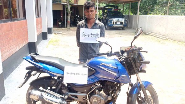 বুধবার ভোরে মোটরসাইকেল ছিনতাইকারী চক্রের সদস্য আব্দুল হান্নানকে (২২) গাজীপুর থানা পুলিশের সহযোগিতায় আটক করেছে সলঙ্গা থানা পুলিশ। পরে তার দেওয়া তথ্যমতে গাজীপুরের কালিগঞ্জ থেকে ছিনতাই হওয়া মোটরসাইকেল উদ্ধার করা