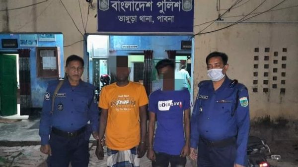 পাবনার ভাঙ্গুড়ায় দেশি মদসহ দুজনকে আটক করেছে ভাঙ্গুড়া থানা পুলিশ। মঙ্গলবার রাত ৭.৪০ টার দিকে ভাঙ্গুড়া থানাধীন অষ্টমনিষা ঘোষ পাড়া রাস্তার উপর হতে তাদের আটক করা হয়। এ সময় তাদের