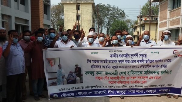 মাননীয় প্রধানমন্ত্রীর দূরদর্শি নেতৃত্বে বিশ্ব আক্রান্ত মহামারী করোনার ভয়াল থাবা থেকে বাঙ্গালী জাতিকে সুরক্ষিত রাখতে প্রতিরোধক ভ্যাকসিন সংগ্রহ ও প্রয়োগের মাধ্যমে ঐতিহাসিক অবদান রাখায় বঙ্গবন্ধু কন্যা জননেত্রী শেখ হাসিনাকে অভিনন্দন