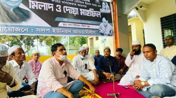 সিরাজগঞ্জের উল্লাপাড়া উপজেলার সলপ ইউনিয়ন পরিষদ চত্ত¡রে সোমবার বাদ আছর সলপ ইউনিয়ন আওয়ামী লীগ ও সহযোগী সংগঠনের আয়োজনে মাননীয় প্রধানমন্ত্রীর রাজনৈতিক উপদেষ্টা বীর মুক্তিযোদ্ধা মরহুম হোসেন তৌফিক ইমাম স্যারের রুহের