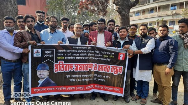 রাজনৈতিক প্রতিহিংসার শিকার নোয়াখালির কোম্পানীগঞ্জে সাংবাদিক বুরহান উদ্দিন মুজাক্কির হত্যাকান্ডের ঘটনায় সারা দেশের ন্যায় পাবনার চাটমোহরে প্রতিবাদ সমাবেশের আয়োজন করেছে বাংলাদেশ মফস্বল সাংবাদিক ফোরাম চাটমোহর,ভাঙ্গুড়া ও ফরিদপুর উপজেলা শাখা। মঙ্গলবার