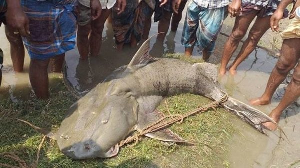 অনলাইন ডেস্ক : জামালপুরের দেওয়ানগঞ্জ উপজেলার যমুনা নদীতে জেলেদের জালে ১১৪ কেজি ওজনের একটি বাগাড় মাছ ধরা পড়েছে। মাছটির দাম ধরা হয়েছে এক লাখ ৩৬ হাজার ৮০০ টাকা। সোমবার সকালে