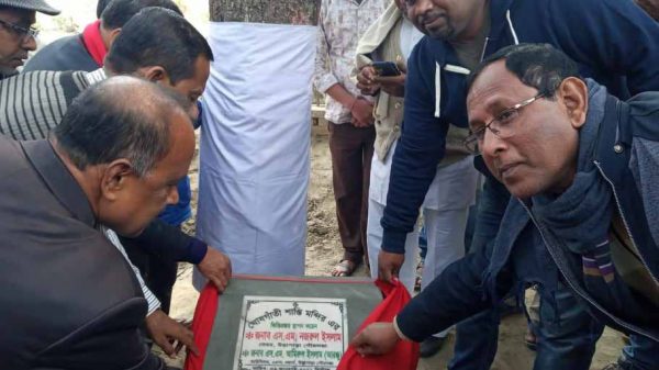 উল্লাপাড়া (সিরাজগঞ্জ) প্রতিনিধিঃ সোমবার উলাপাড়া পৌরসভার ঘোষগাঁতী পালপাড়া মহলায় প্রাচীন শাšি— মন্দিরের নতুন ভবনের ভিত্তি ফলক উন্মোচন করা হয়। পৌর মেয়র এস এম নজর“ল ইসলাম প্রধান অতিথি হিসেবে এবং ৫নম্বর