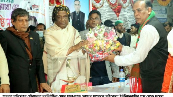 পাবনার চাটমোহর পৌরসভার নবনির্বাচিত মেয়র অ্যাডভোকেট সাখাওয়াত হোসেন সাখোকে সংবর্ধনা দেয়া হয়েছে। বুধবার রাতে ছাইকোলা ইউনিয়ন আওয়ামীলীগের উদ্যোগে এ সংবর্ধনা দেয়া হয়। ছাইকোলা বাজারে আয়োজিত অনুষ্ঠানে নবনির্বাচিত মেয়রকে ফুলেল শুভেচ্ছা