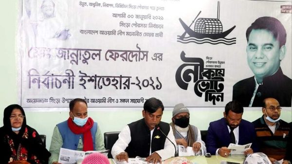 সিংড়া প্রতিনিধি:নাটোরের সিংড়া পৌরসভার সাধারণ নির্বাচনে ইশতেহার ঘোষণা করেছেন আওয়ামী লীগের মেয়র প্রার্থী, বর্তমান মেয়র জান্নাতুল ফেরদৌস। রবিবার দুপুর ১২টায় উপজেলা ও পৌর আওয়ামী লীগের আয়োজনে উপজেলা বণিক সমিতির কার্যালয়ে
