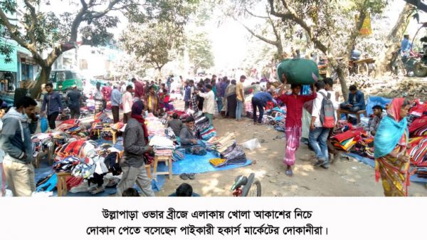 সিরাজগঞ্জের উল্লাপাড়ায় নানা সমস্যার মাঝেও খোলা জায়গায় পাইকারী হকার্স মার্কেট জমে উঠেছে। দেশের বিভিন্ন এলাকা থেকে ব্যবসায়ীরা এসে এ মার্কেট থেকে সব ধরনের পোষাক সামগ্রী পাইকারী কিনে নিয়ে যায়। অথচ