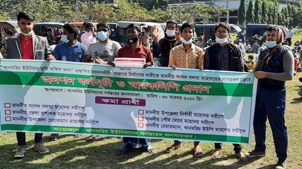 পাবনার ভাঙ্গুড়া উপজেলার খানমরিচ ইউনিয়ন ভুমি অফিসের নতুন ভবন নির্মাণের স্থান নির্বাচনকে কেন্দ্র করে আজ সোমবার (৩০ নভেম্বর) উপজেলায় পাল্টাপাল্টি মানববন্ধন ও অনশন কর্মসূচী পালিত হয়েছে। ওই ইউনিয়নের ময়দানদীঘি বাজারে
