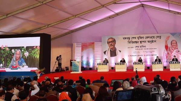 জাতীর জনক বঙ্গবন্ধুর স্বপ্ন-বাস্তাবায়নে সু-দীর্ঘ প্রতিক্ষার পর উত্তর-পশ্চিমাঞ্চলীয় জেলার সাথে রেল যোগাযোগ বাড়ানোর লক্ষ্যে ৪ দশমিক ৮ কিলোমিটার দীর্ঘ ডাবল-লাইন ডুয়েল-গেজ বঙ্গবন্ধু শেখ মুজিব রেল সেতুর ভিত্তিপ্রস্তর স্থাপনের শুভ উদ্ধোধন