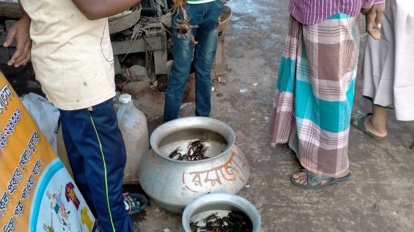 চলনবিলের তাড়াশ উপজেলার বর্তমানে মাঠ থেকে পানি নামার সময় জেলেদের খরা জালে প্রচুর কাকড়া ধরা পড়ছে। তাড়াশ পৌর বাজার , মান্নাননগর বাজারসহ বিভিন্ন অস্থায়ী বাজারে এই ধরা পড়া কাকড়া বিক্রি