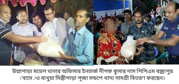 সিরাজগঞ্জের উল্লাপাড়া মডেল থানা অফিসার ইনচার্জ দীপক কুমার দাস পিপিএম উল্লাপাড়া পৌরসভাসহ বিভিন্ন এলাকায় শারর্দীয় দুর্গাপুজা মন্ডপ পরিদর্শন করেছেন। প্রতিটি পুজা মন্ডপে গিয়ে তিনি বক্তব্য রেখেছেন আইন শৃংখলা সুষ্ঠ ও