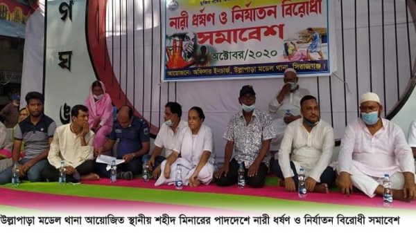 উল্লাপাড়া (সিরাজগঞ্জ) প্রতিনিধিঃ শনিবার উলাপাড়া শহীদ মিনার পাদদেশে নারী ধর্ষন ও নির্যাতন বিরোধী সমাবেশ অনুষ্ঠিত হয়। উলাপাড়া মডেল থানা পুলিশ এ সমাবেশের আয়োজন করে। উলাপাড়া মডেল থানার ভারপ্রাপ্ত কর্মকর্তা দীপক