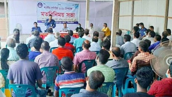 টাঙ্গাইলের গোপালপুরে শারদীয় দুর্গাপূজা ২০২০ উদযাপন উপলক্ষে পুলিশ প্রশাসনের সাথে পূজা উদযাপন কমিটির মতবিনিময় সভা অনুষ্ঠিত।গোপালপুর থানা পুলিশের আয়োজনে (১১ অক্টোবর) দুপুরে গোপালপুর থানা প্রাঙ্গণে। আসন্ন শারদীয় দুর্গাপূজায় আইন শৃঙ্খলা ও