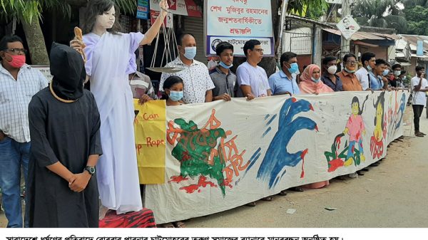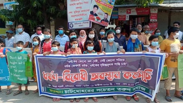 দেশে অব্যহত ধর্ষণের ঘটনার তীব্র প্রতিবাদ এবং ধর্ষকদের মৃত্যুদন্ডের দাবীতে পাবনা জেলার চাটমোহরের স্থানীয় সচেতন তরুন সমাজ-এর উদ্যোগে ১১ অক্টোবর রবিবার বেলা ১১টায় চাটমোহর পৌর সদরের জিরোপয়েন্ট মোড়ে ধর্ষণ বিরোধী
