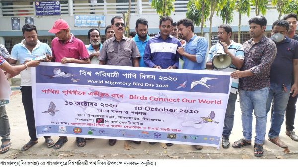 সিরাজগঞ্জের শাহজাদপুরে বিশ্ব পরিযায়ী পাখি দিবস পালিত হয়েছে।পাখি সংরক্ষণে সকলে এক সঙ্গে কাজ করি এই শ্লোগানকে সামনে রেখে গতকাল শনিবার সকালে বিশ্ব পরিযায়ী পাখি দিবস উপলক্ষে উপজেলা চত্বরে স্বেচ্ছাসেবী সংগঠন