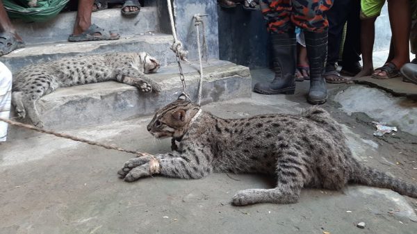 পাবনার চাটমোহরে গ্রামবাসীর হাতে ধরা পড়েছে দু’টি মেছোবাঘ। তার মধ্যে পিটুনিতে মারা গেছে একটি। আরেকটি জীবিত অবস্থায় উদ্ধার করে বন বিভাগ। মেছোবাঘের আক্রমণে আহত হয়েছেন অন্তত চারজন। তাদের হাসপাতালে নিয়ে