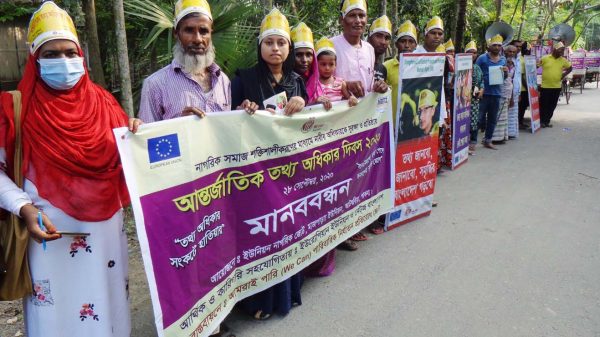 ইউরোপিয়ান ইউনিয়ন নেট্জ বাংলাদেশ এর আর্থিক ও কারিগরি সহযোগিতায় এবং আমরাই পারি পারিবারিক নির্যাতন প্রতিরোধ জোট এর বাস্তবায়নে “তথ্য অধিকার সংকটে হাতিয়ার সংকটকালে তথ্য পেলে জনগনের মুক্তি মেলে” এই প্রতিপাদ্যকে